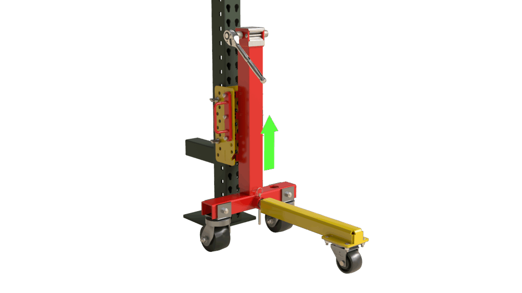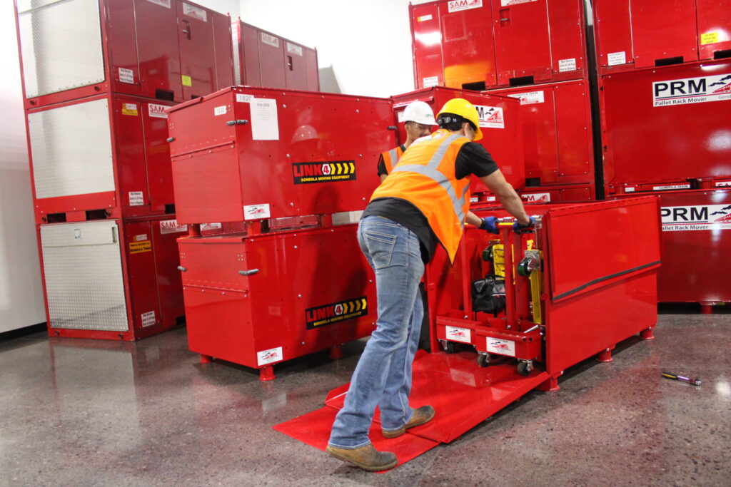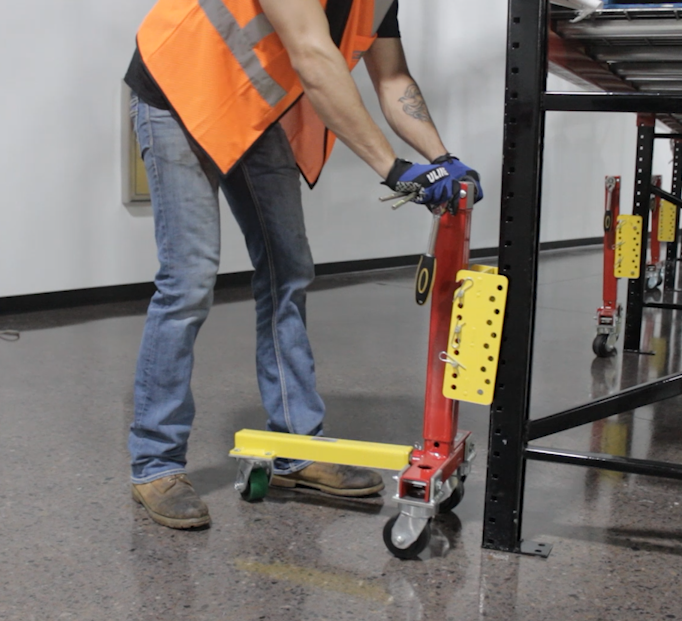 skates around the first pallet rack fixture to be mobilized. - Place each skate in front of an upright.